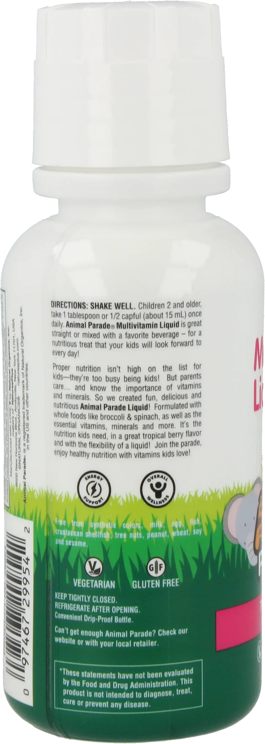 Animal Parade® Liquid is a liquid multivitamin specially designed for children. Children need a healthy diet to grow, develop well, and perform well in school. Providing your children with the right nutrients in sufficient and balanced quantities is not always easy. Some children are poor eaters or prefer sweets and pizza to healthy fruits and vegetables. Animal Parade® Liquid is a liquid vitamin and mineral multiplicity, the composition of which is specially designed to meet the needs of children. It provides vitamins and minerals, as well as whole food concentrates from fruits and vegetables, including spirulina, carrots, broccoli, brown rice, and spinach. Animal Parade delivers the quality that parents expect and the taste that children like. Hint: Food supplements are not intended to be a substitute for a balanced and varied diet.