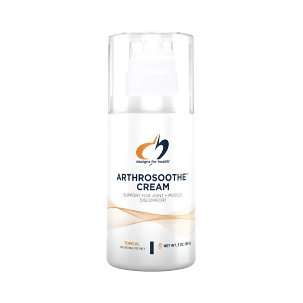 ArthroSoothe™ Cream contains compounds clinically proven to support joint health, such as glucosamine, chondroitin, and MSM, combined with aloe vera gel, emu oil, arnica, and other natural compounds known for their healing effects.* It offers ideal support for joint health in a topical cream designed to alleviate occasional discomfort associated with overworked joints and muscles through its unique tissue-warming and surface-cooling effects. Joints, cartilage, ligaments, tendons, and synovial fluid (which surrounds and lubricates the joints) undergo a continuous but slow natural regeneration process. This process can be affected by many factors including nutrition, activity levels, hormones, stress, aging, immune status, gut health, toxin loads, and certain medications. Proper nutrition provides valuable compounds that can help joints and associated tissues to function at their best. Highlights: Glucosamine, sulfur (MSM), hyaluronic acid – support collagen synthesis (found in tendons, cartilage, and ligaments); White willow bark, capsicum, arnica, chamomile, calendula, and witch hazel – powerful botanicals that deliver maximum support for a healthy inflammatory response and reduce occasional discomfort associated with joint damage; Menthol and oils of peppermint, cajeput, tea tree, oregano, and eucalyptus – provide a gentle cooling effect, followed by a warming effect that eases discomfort and delivers relief for sore joints; Emu oil, aloe vera gel, capric/caprylic triglycerides – provide ultimate moisture and a skin-loving, absorptive medium for active ingredients.