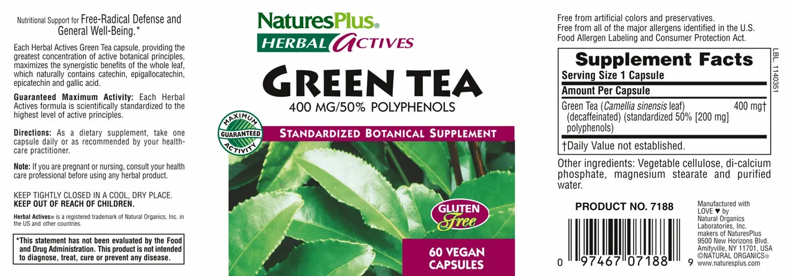 ) in vegetarian capsules. Green tea contains polyphenols with a powerful antioxidant effect.