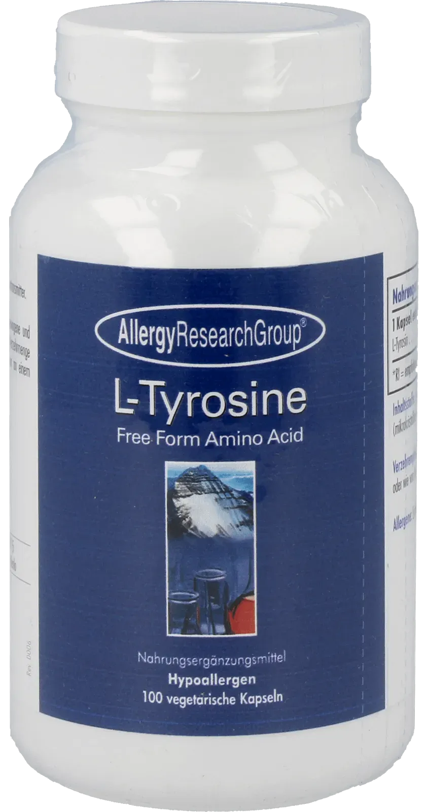 L-Tyrosine from Allergy Research Group® offers L-tyrosine in the free L-form. This product provides 500 mg of pure L-tyrosine per vegetarian capsule. Each package contains 100 capsules.