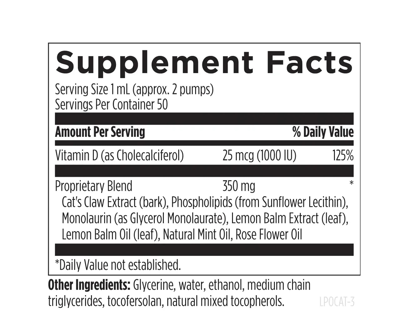 Liposomal Cat’s Claw Synergy includes vitamin D3, which is well known for its role in supporting the immune system.*