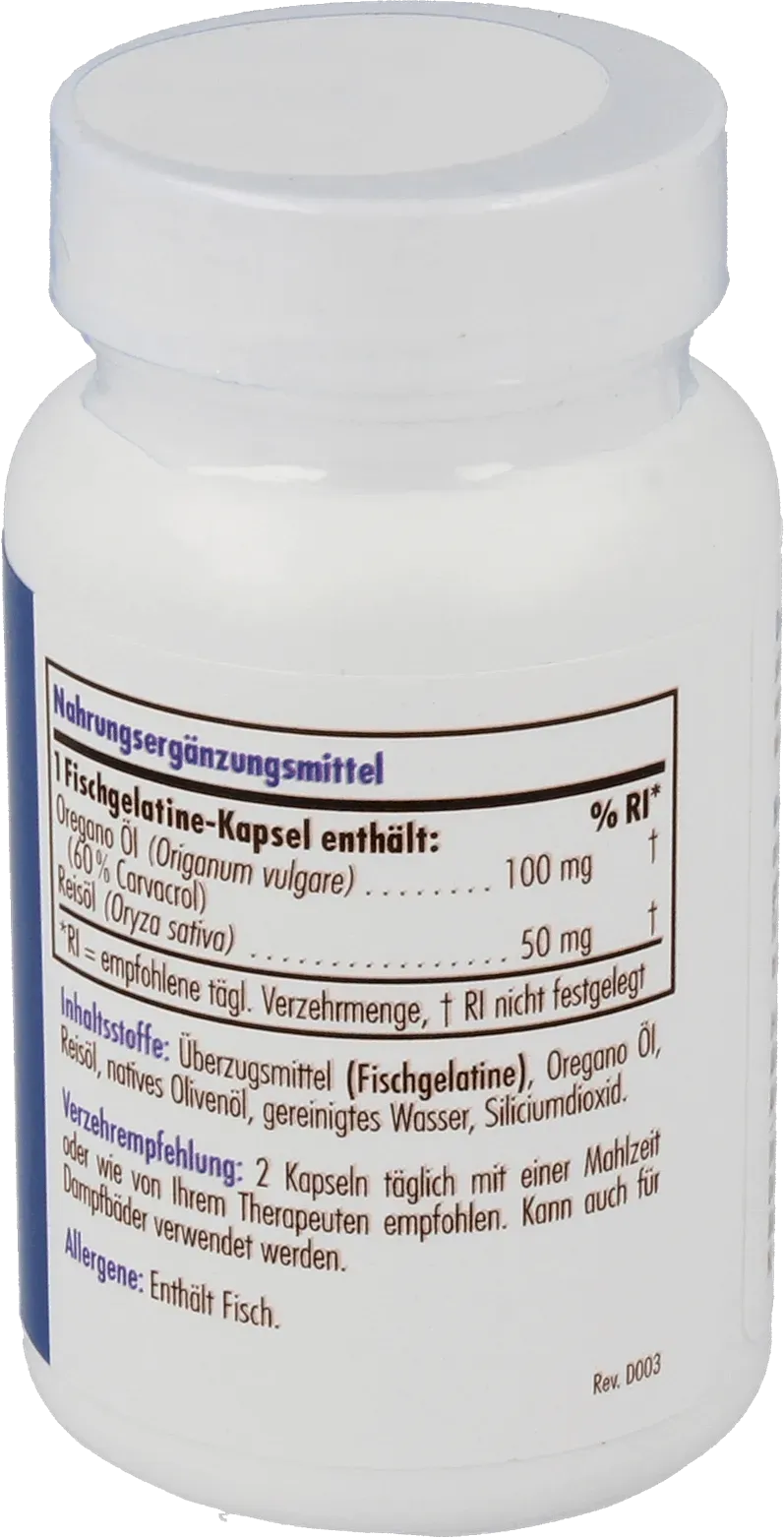 Oregano Oil (Oregano Oil) contains the concentrated, essential oil of Origanum vulgare in a base of rice bran and olive oil. This essential oil contains the active ingredient carvacrol as well as small, non-standard amounts of thymol and rosmarinic acid. Studies have shown that carvacrol has an antimicrobial effect with a wide range of uses. The best results were obtained with the so-called gram-positive bacterial species such as e.g. Streptococcus and Staphylococcus. Carvacrol destabilizes the cell wall of the bacterium. ATP and other substances contained in the cytoplasm of the bacterium leak out as a result. The loss of ATP eventually destroys the bacterium. (Carvacrol and its derivatives antibacterial agents, Phytochem. Rev. 01/2018)