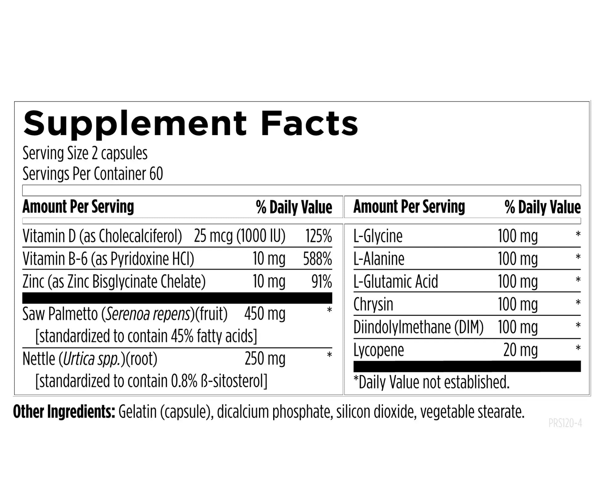 If a patient’s dihydrotestosterone (DHT) levels are normal, low, or unknown, consider Prostect as an alternative product, as it does not include saw palmetto, which will not reduce DHT. Free of : gluten, dairy, soy, non-gmo Keep out of reach of young children.