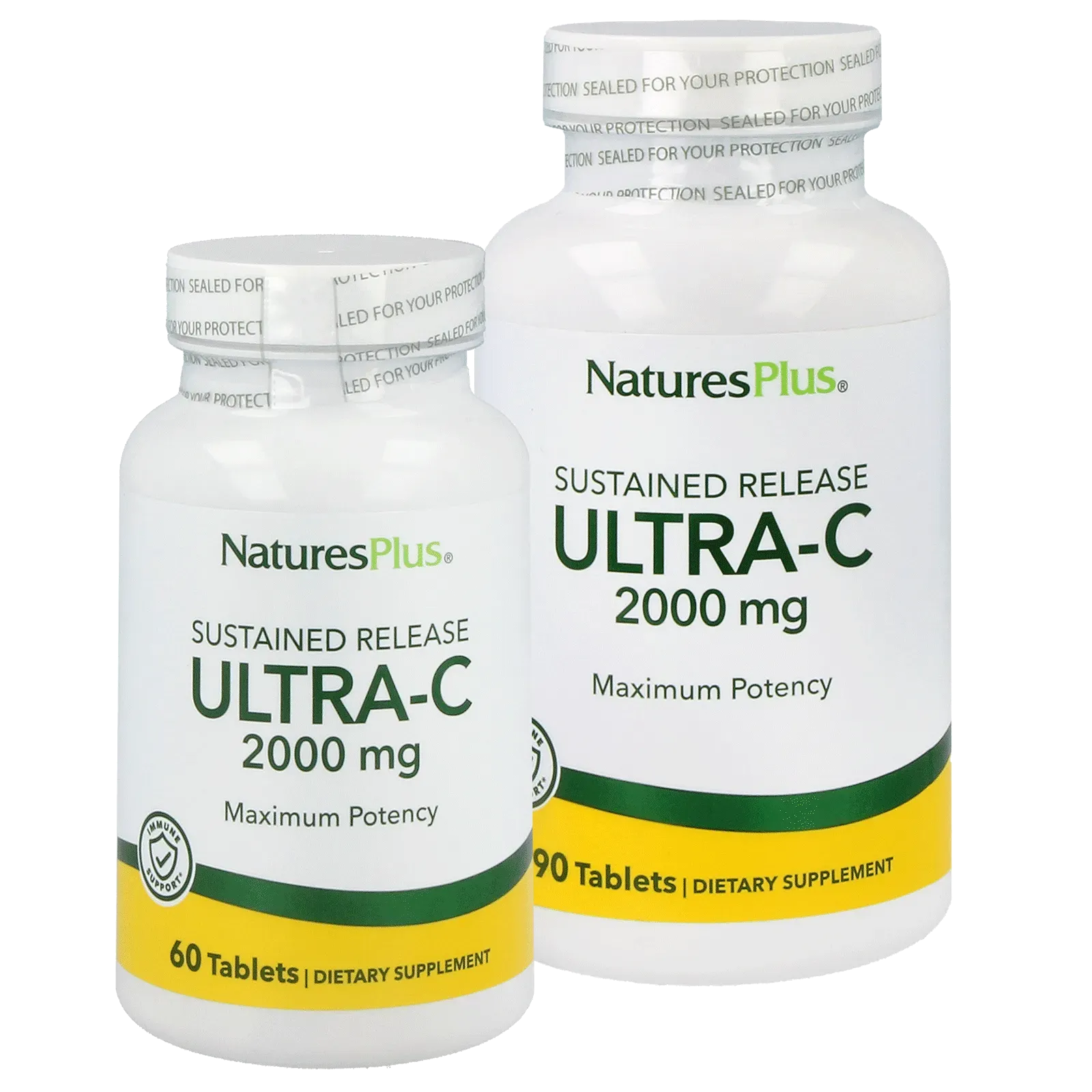 Ultra-C 2000 mg of NaturesPlus contains 60 or 90 delayed-release tablets.