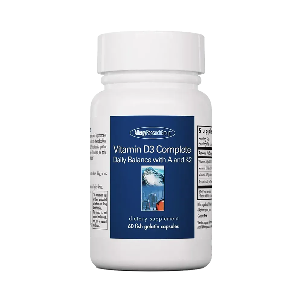 Vitamin D3 Complete is formulated to respect the crucial importance of balancing vitamin D with vitamin A.* It also contains the other oil-soluble vitamins, K2 (menaquinone-7) and DeltaGOLD® tocotrienols (part of the vitamin E family). Vitamin D3 Complete is formulated for safe, long-term daily supplementation for most individuals.*Vitamin D3 Complete is in a natural base of medium chain triglycerides, and is encapsulated in state-of-the-art fish gelatin capsules.