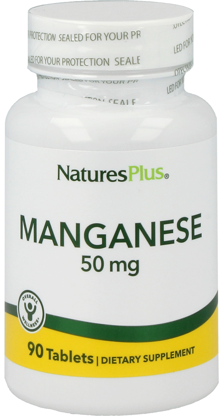 Was ist Mangan? Das essenzielle Spurenelement Mangan hat viele wichtige Funktionen im Körper. Es ist unverzichtbarer Bestandteil von Enzymen, die den Kohlenhydrat-, Protein- und Fettstoffwechsel steuern und dadurch für die Bildung wichtiger körpereigener Verbindungen zuständig sind. Die Mitochondrien sind die Energiekraftwerke unserer Zellen und brauchen Mangan für die Funktion des Enzyms Superoxiddismutase (SOD). Dieses Enzym schützt sie vor den aggressiven freien Radikalen und sichert die Energiebereitstellung der Zelle. Auch für den Aufbau von Bindegewebe, Knorpel und Knochen spielen manganabhängige Enzyme eine wichtige Rolle. Hauptspeicherorte von Mangan im menschlichen Körper sind Leber, Knochen, Nieren und Bauchspeicheldrüse. Mangan in unserer Nahrung Mangan ist vor allem in pflanzlichen Lebensmitteln enthalten. Manganreiche Lebensmittel sind (Vollkorn-)Getreideprodukte wie Brot, Weizenkeime, Haferflocken, Hirse oder Reis, aber auch Hülsenfrüchte, Leinsamen und Nüsse sowie grünes Blattgemüse und dunkle Beeren (Heidelbeeren, Aroniabeeren) oder Trockenpflaumen. Tierische Lebensmittel sind allerdings vergleichsweise manganarm. Mangan als Supplement Manganese von NaturesPlus enthält 50 mg Mangan pro Tablette. Eine Packung liefert 90 Tabletten.Hinweis: Nahrungsergänzungsmittel sollen kein Ersatz für eine ausgewogene und abwechslungsreiche Ernährung sein.