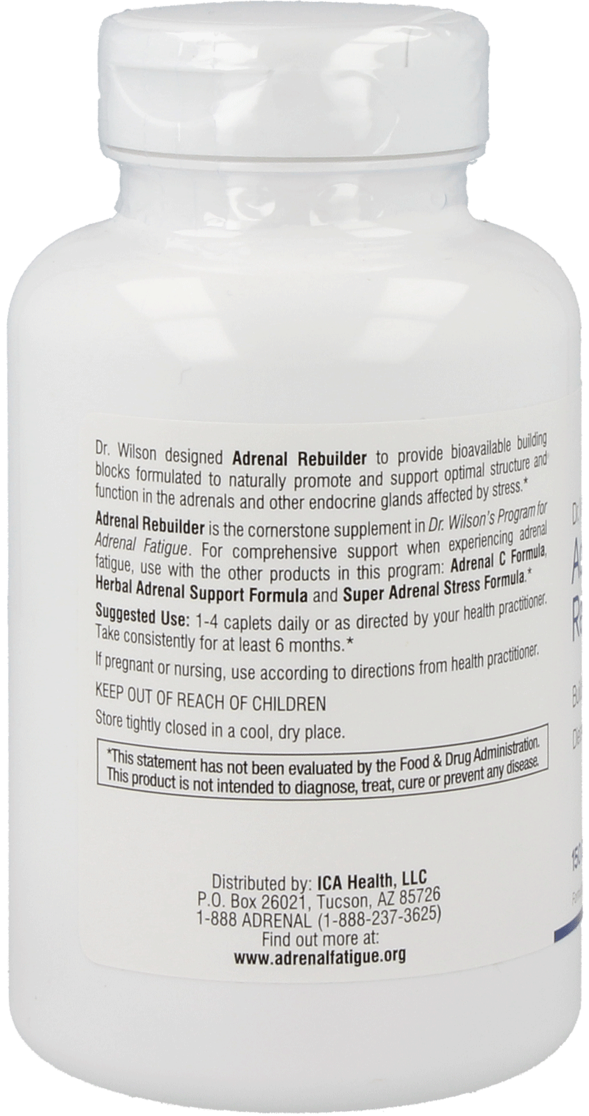 Dr. Wilson's Adrenal Rebuilder is a multiglandular supplement that includes adrenal cortex for stress and adrenal support. It features stress gland extracts from the adrenal cortex, gonad, hypothalamus, and pituitary, sourced from porcine. This product is formulated to enhance stress hardiness and strengthen the body’s stress response, serving as a cornerstone supplement in Dr. Wilson’s Adrenal Fatigue Protocol. The glandular extracts in Dr. Wilson’s Adrenal Rebuilder promote stress resilience and help strengthen the body’s stress response. Notes: Food supplements are not a substitute for a varied and balanced diet and a healthy lifestyle. Store food supplements out of the reach of small children. Do not exceed the recommended daily intake.
